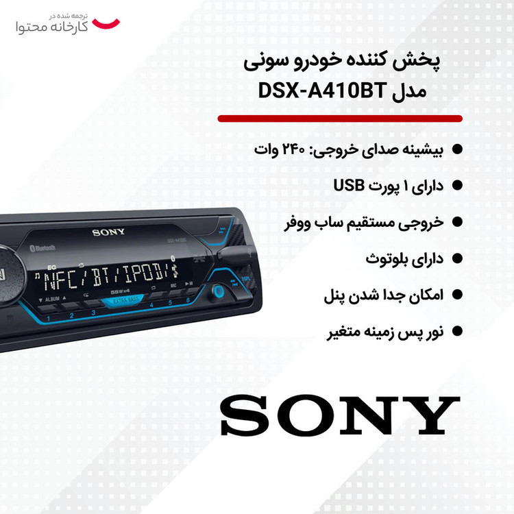 پخش کننده خودرو سونی مدل DSX-A410BT
