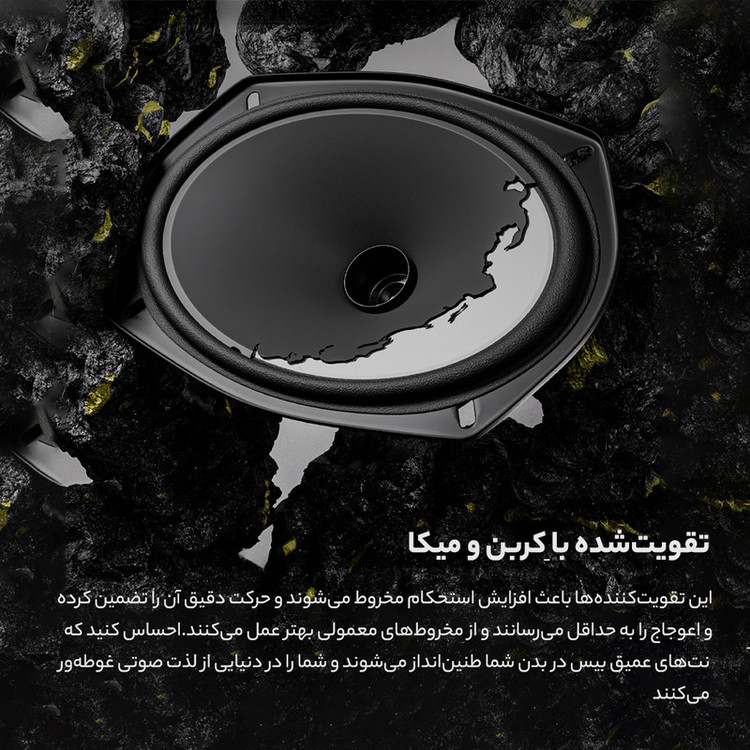 توان RMS ( واقعی ) : 120وات ، حساسیت : 92 دسیبل ، مقاومت : 4 اهم
