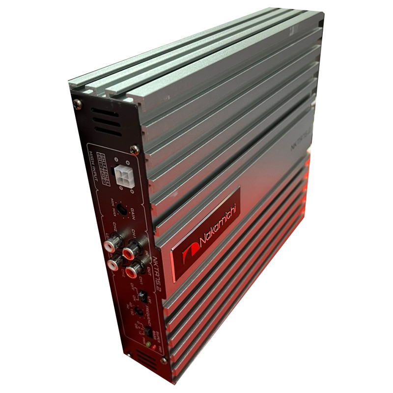 آمپلی فایر ۲ کانال مدل ۷۵.۲ شرکت ناکامیچی یکی از قویترین آمپلی فایرهای دو کانال این شرکت می باشد. توان حقیقی هر کانال این آمپلی فایر ۷۵ وات می باشد و توان راه انداری باندهای نسبتا قدرتمند را نیز دارد. این ویژگی به این محصول کمک کرده تا گزینه ای بسیار مناسب برای سیستم های ارزان و قدرتی بشمار بیاید. در واقع اگر برای راه اندازی باندهای نسبتا سنگین اگر دنبال آمپلی ارزان قیمت هستید ۷۵.۲ یکی از مناسبترین گزینه هاست، راه اندازی باندهایی مانند ۷۱۸ و ۶۹۹۶ کتوود، ۶۹۷۵V۳ پایونیر ۶۹۸۷ و ۶۹۹۷ پایونیر و ۶۹۵۹ جی وی سی همگی با این آمپلی فایر امکان پذیر می باشد. این آمپلی فایر دو کاناله ی شرکت ناکامیچی با توجه به آن که می تواند از قابلیت پل زنی مونو بهره بگیرد، راه اندازی ساب ووفرهایی مانند ۱۲۱۴ جی بی ال، ۳۰۰ و ۳۱۱ و همچنین ۳۰۱۰ کنوود و ۱۲۱L سونی و ۱۲۰۲ سونی و تقریبا ساب ووفرهایی مشابه با توان ۲۵۰ الی ۳۰۰ RMS همگی با این آمپلی فایر قابل راه اندازی هستند.