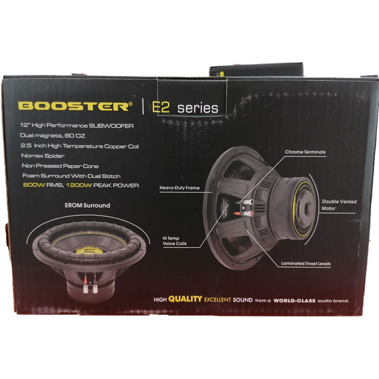 اندازه: 12 اینچ - 30 سانتیمتر حداکثر قدرت 1200 وات توان اسمی 600 وات مقاومت : 4 اهم عمق حفره: 150 میلیمتر دارای 1 عدد کوئل 4 اهمی شرکت بوستر از جمله شرکتهایی است که در سال اخیر با ارتقا سطح محصولات خود طرفداران زیادی پیدا کرده است. این شرکت با پیشرفت چشمگیر در کیفیت و قدرت محصولات خود و در عین حال با ارائه قیمت مناسب سعی در رقابت با بزرگان سیستم صوتی ماشین در ایران را دارد. ساب ووفر سری E2 بوستر از جمله ساب ووفرهای شرکت بوستر است که در کنار طراحی زیبای خود حجم صدای فوق العاده به شنونده میدهد. این ساب ووفر در کنار بیس مناسب خود ویبره قدرتمندی نیز ارائه میدهد. با توجه به قیمت مناسب این ساب ووفر و قدرت 600RMS آن می توان به کم نظیر بودن این ساب ووفر در قیمت خود پی برد. ساب ووفر 12E2-D4 را می توان در انواع باکسهای شرکتی استفاده کرد و گزینه 1250 کارینا از گزینه های مناسب بحساب می آید. اگر شما نیز دنبال صدای قدرتمند و ویبره عالی و قیمت مناسب در کنار هم هستید پیشنهاد می شود بدون شک 12E2-D4را امتحان کنید.