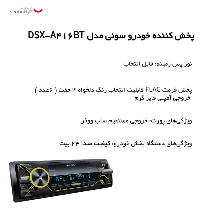 پخش کننده خودرو سونی مدل DSX-A416BT