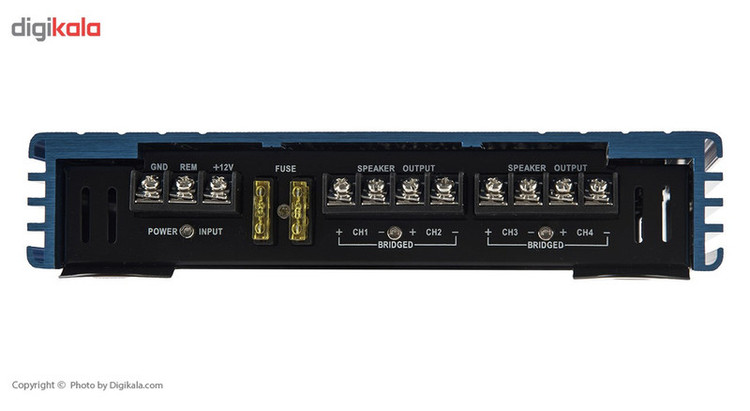 محصولی که در این قسمت مشاهده میکنید آمپلیفایر MBA-4120XF ساخت شرکت MB Acoustics است. آمپلیفایر خودرو که در کنار سیستم صوتی به کار میرود برای تقویت صدایی به کار میرود که به بلندگوها ارسال میشود. در اکثر سیستمهای صوتی بدون استفاده از آمپلیفایر نمیتوانید از حداکثر توانایی بلندگوهای خود استفاده کنید. این آمپلیفایر بهصورت 4 کاناله طراحی شده است که بدین معنی است که میتواند 2 جفت اسپیکر را پشتیبانی کند. البته برخی افراد از این سیستم برای راهاندازی یک جفت اسپیکر و 1 عدد سابووفر استفاده میکنند. نکتهای که در خرید آمپلیفایر به آن دقت کنید توان بلندگوها و سازگاری آن با توان خروجی مداوم آمپلیفایر است. بر طبق مشخصات این محصول، این آمپلیفایر قادر است اسپیکرهایی با توان 40 وات را راهاندازی کند. همچنین میتوانید با روش پلزنی 2 خروجی با قدرت 160 وات از این آمپلیفایر بگیرید و از آن بهتنهایی برای راهاندازی سابووفرهای قوی استفاده کنید.
