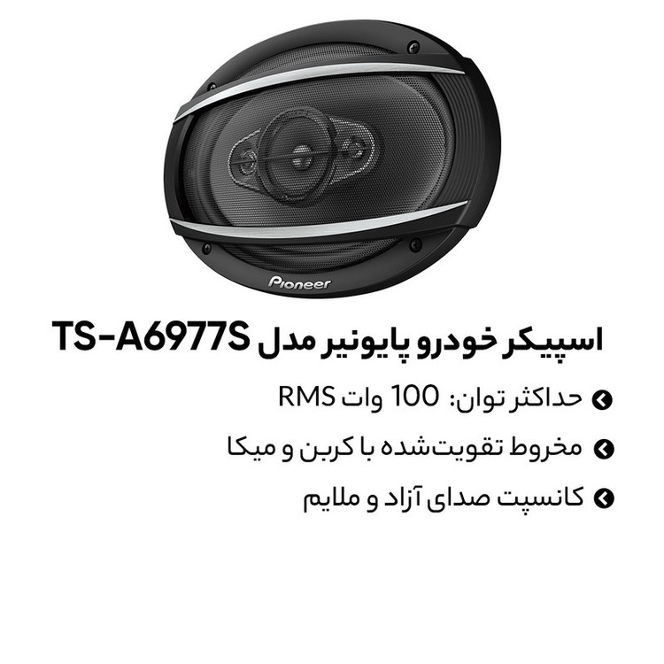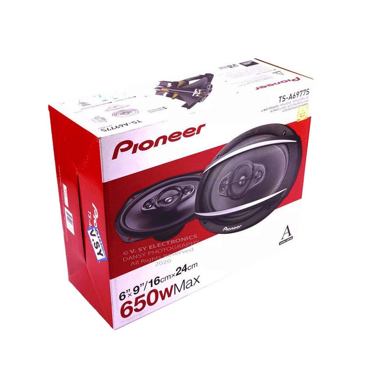 بلندگوی TS-A6977S از محصولات شرکت پایونیر است که از یک ووفر، یک میدرنج، یک عدد تیوتر و یک عدد وپرتیونر تشکیل شده است.نوع این بلندگو بیضی بوده و ابعاد این بلندگو 17x9x14 سانتیمتر بوده و وزن آن 4 گرم است. بلندگو TS-A6977S جایگزین مدل 6966S و 6965S شرکت پایونیر خواهد بود. بلندگوی TS-A6977S یکی از بهترین گزینههای شرکت پایونیر برای استفاده در سیستمهای ساده و بدون آمپلی فایر است. این بلندگو بیس مناسبی به مخاطب خود میدهد و برای ماشینهایی مانند پژو در کنار 1651 ( در داخل دربهای جلو) گزینه مناسبی برای استفاده است. بیشینه صدای خروجی این دستگاه 650 وات است. این بلندگو دو عددی است و سایز آن 6 × 9 اینچ خواهد بود. عمق نصب برای این دستگاه 90 میلیمتر بوده و فرکانس پاسخگویی آن بین 22 الی 24000 هرتز است.